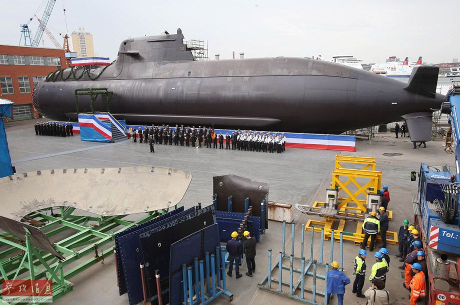 资料图:德国基尔,造船厂的工人和德国士兵参加212A级“U36”潜艇的命名仪式。